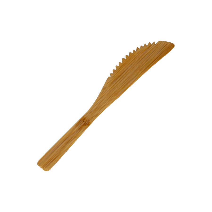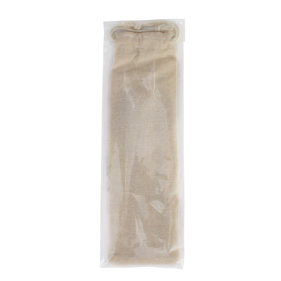 Set de 3 cubiertos de Bamboo de 16cm. de largo c/u, presentados en bolsa de Algodón tipo saco color natural de 22.5 x 7 cm. Cuenta con asa-cordón retraíble de Algodón, en la parte superior de la bolsa. Cubiertos: Cuchillo, Tenedor, Cuchara.