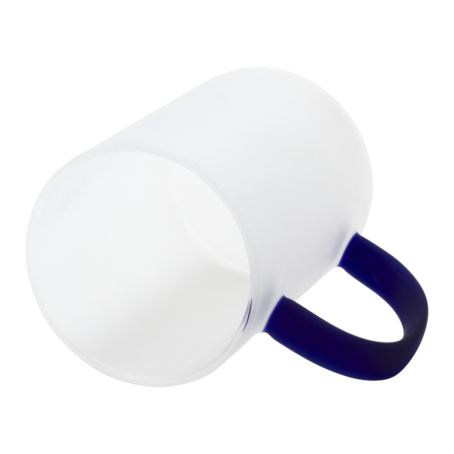 Tazón de Vidrio Empavonado para Sublimación, para líquidos fríos, con asa de color sólido. Capacidad 330ml. Presentación bolsa plástica empavonada + caja de cartón blanco. Calidad Premium ORCA.